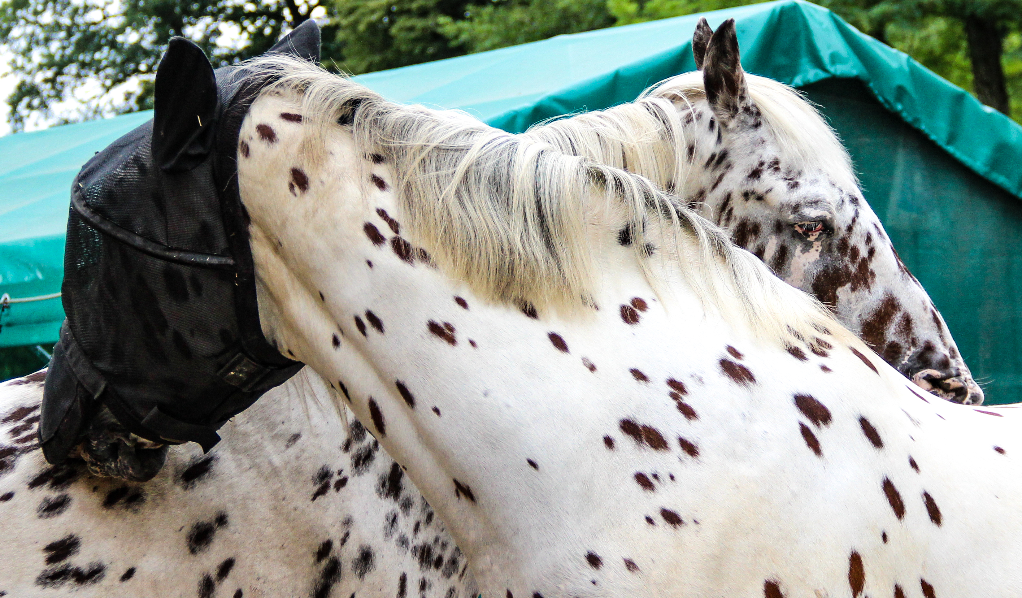 - Da Platini Ekzemer ist, arbeiten wir auch durchgehend im Sommer mit Decke (Ekzemerdecken sind leichter als Regendecken). Da der Bauch und der Hals da auch bedeckt sind, hat er so mal Ruhe. Die Pferde schwitzen zwar etwas, aber das nimmt er gerne in Kauf. Er scheuert dann kaum noch. Wir brauchen im Jahr 2 Decken…