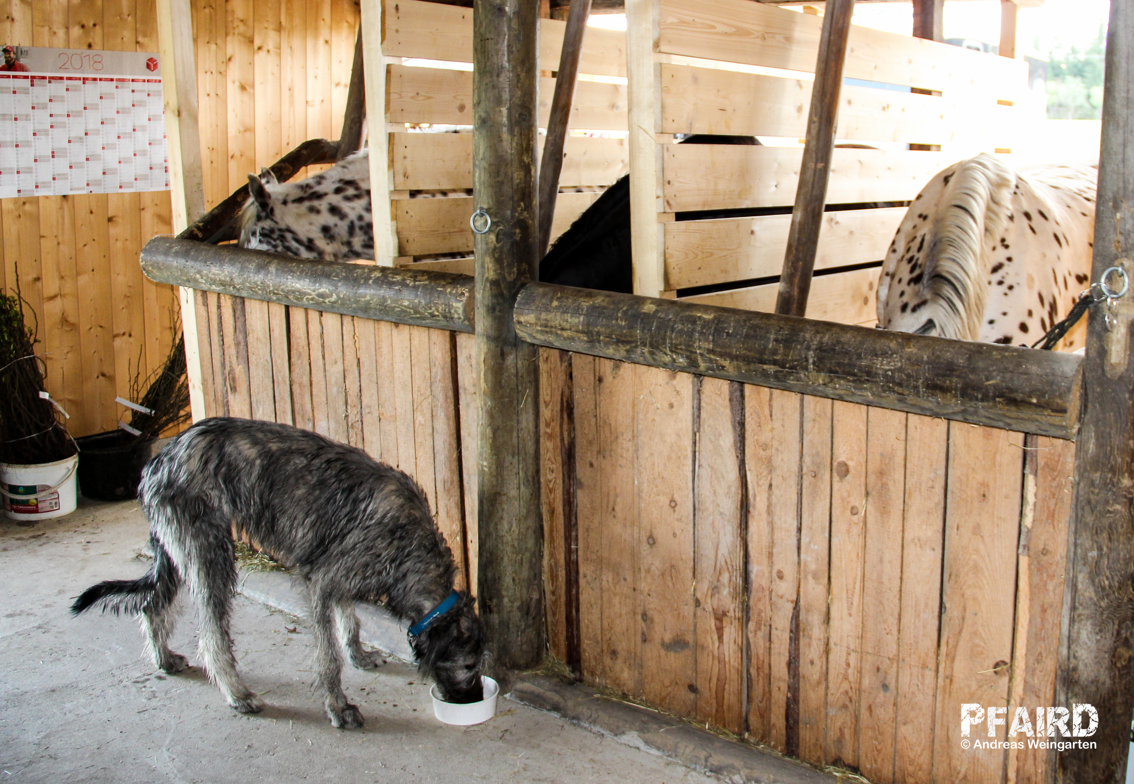 neben Heu und Gras füttern wir den Pferden Hafer hafer-test-2019.pdf zu. Der Hafer bringt zusätzliche Energie, wenn Joya zum Beispiel trainieren muss oder auf ein Turnier fährt. Auch im Winter oder bei äußerst schlechten Witterungsbedingungen können wir die regelmäßigen Minirationen entsprechend anpassen. Auch ein Hauch Leinöl bietet eine gute Grundlage um einmal nötige Medikamente ins Pferd zu bringen und ihnen jeden Tag eine Freude zu bereiten, welche auch gut ist für Verdauung, Hufe, Haare und Fellwechsel. So ist auch die Gabe von Mineralien, Tee oder anderen Mittelchen zur Stärkung (wie bei Samira mit 26 ab und zu nötig) kein Problem. Bei diesen täglichen Fütterungsterminen geben wir dann auch mal Karamalz (wenn eines der Tiere zusätzliche Kalorien benötigt) oder Äpfel und Möhren (falls frisch und erhältlich). Diese Zusatzrationen passen wir je nach Training, Außentemperaturen, Fellwechsel oder Gesundheitszustand an.